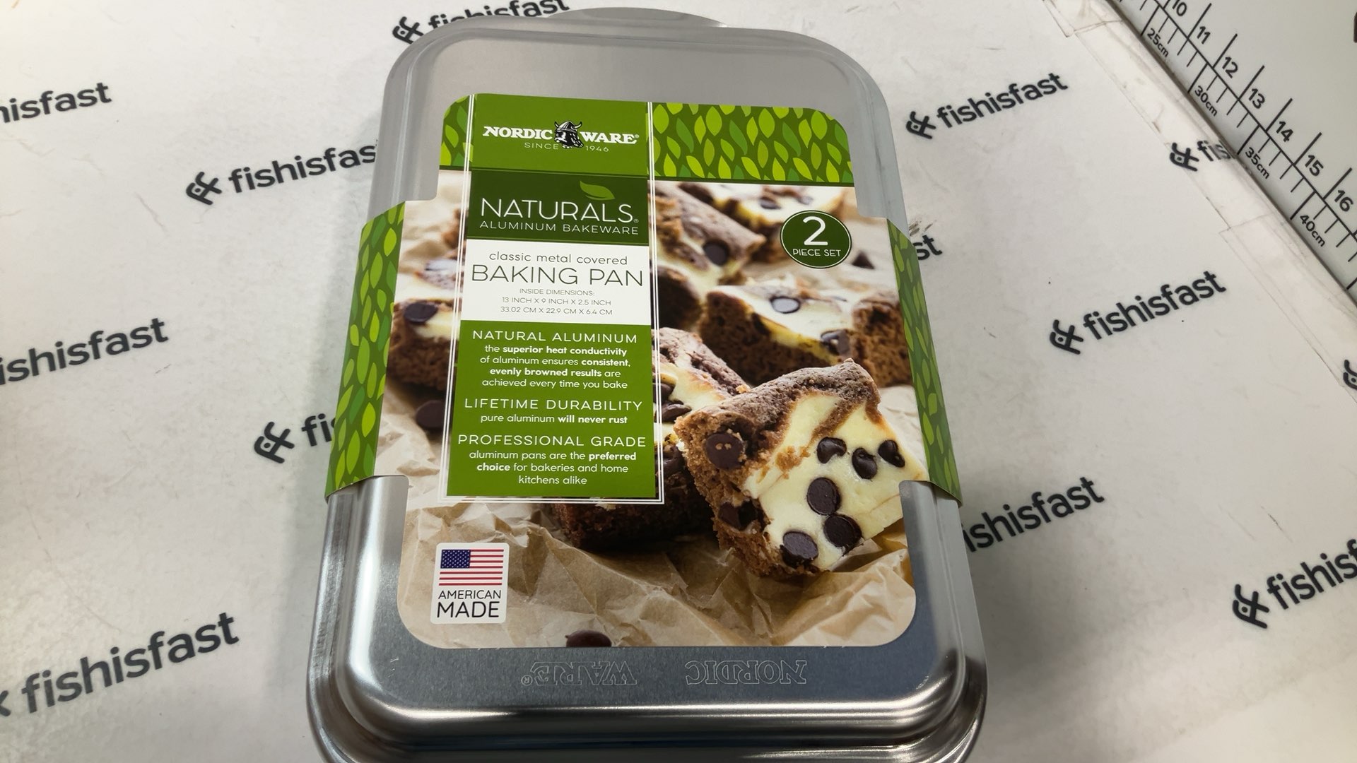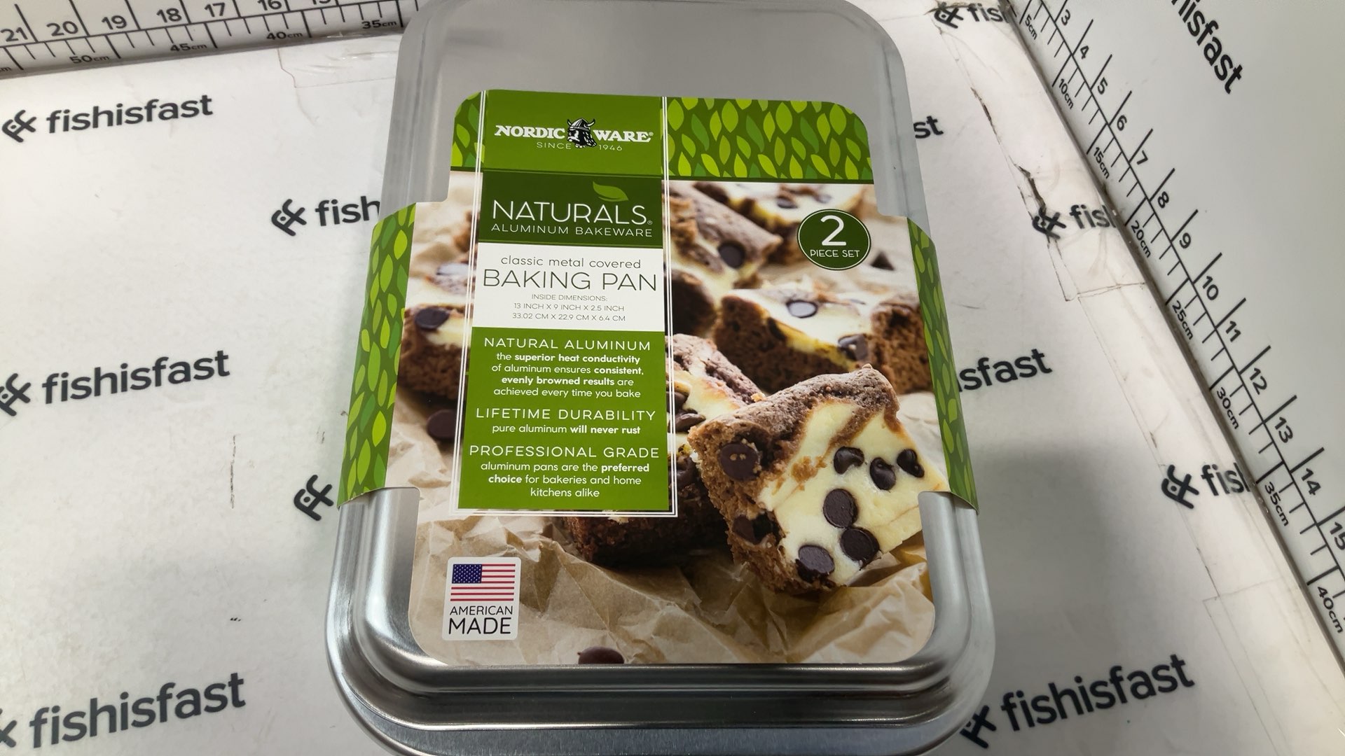 Bake delicious brownies and keep them fresh with this brownie pan and storage container. This cake pan holds a traditional 9 inch x 13 inch cake. Bake in it then cover it with the metal lid and it's ready to take with you