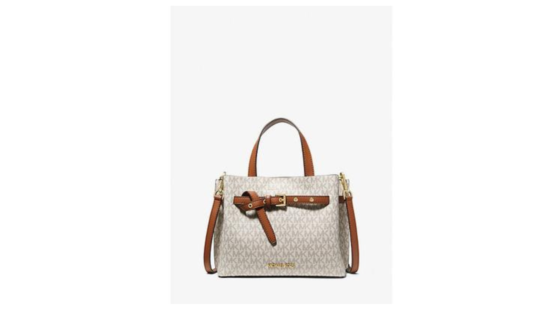 Anywhere, anytime, our Emilia handbag is incredibly practical and gives you a chic look. Crafted from signature printed canvas, this everyday handbag features a clean silhouette enhanced with gold-tone details and a belt. Remove the shoulder strap and carry it by the top handles.